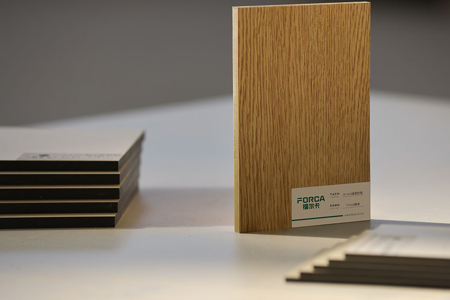 福爾卡·抗倍特板(纖維樹脂板)是由裝飾色紙含浸三聚氰胺樹脂,加上多層黑色或褐色牛皮紙含浸酚醛樹脂層疊后,再用鋼板經由高溫(150° C)高壓(1430psi)的環境壓制而成,產品密度不低于 1450KG/m',厚度從 1.5mm 到 25mm 皆可制作。酚醛樹脂纖維板依其表面色紙層,可滿足多種花色選擇,單面或雙面的裝飾需求。